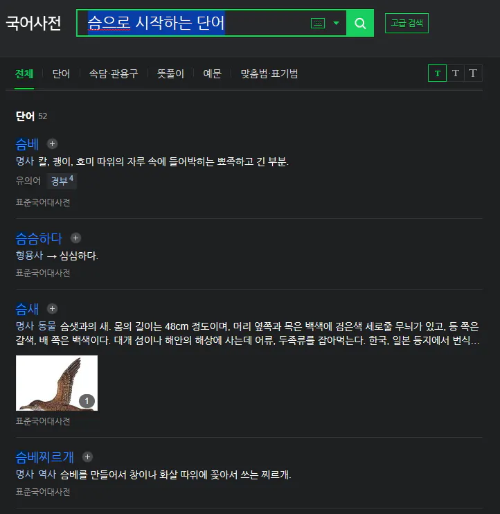 슴으로 시작하는 단어의 종류와 뜻