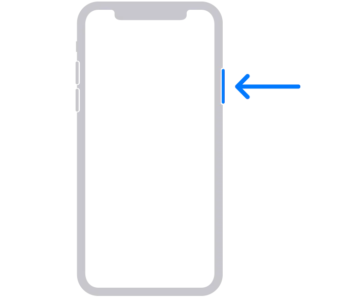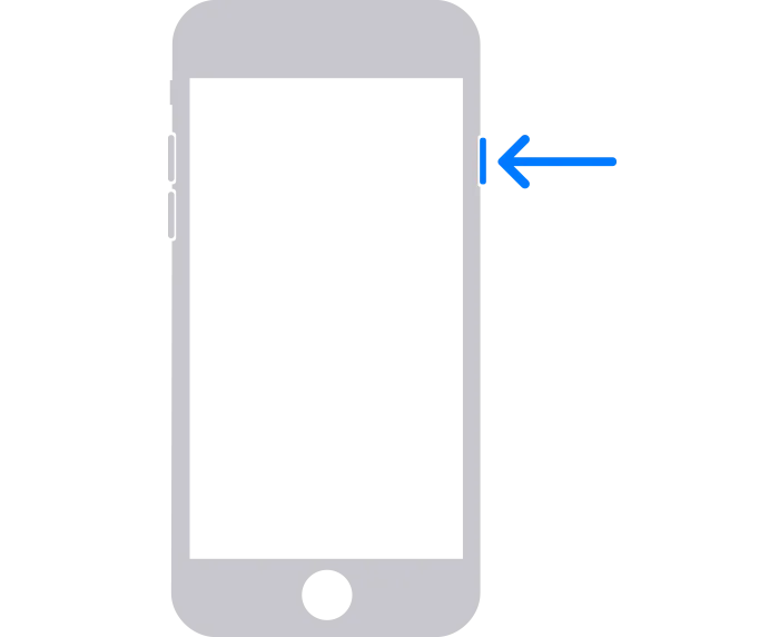 – iPhone SE(2세대 및 3세대)를 비롯한 iPhone 8, iPhone 8 Plus, iPhone X 및 이후 모델의 경우 측면 버튼을 사용합니다.