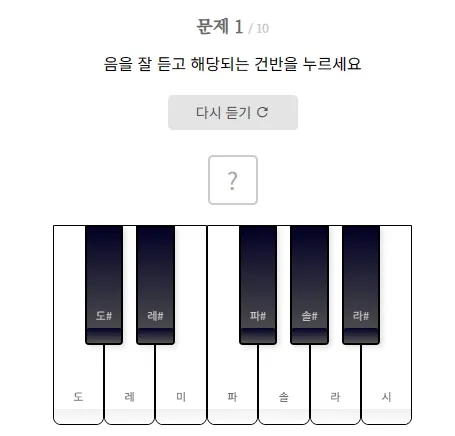 이 사이트에서는 피아노, 통기타, 클래식기타, 일렉기타 중 원하는 악기의 소리를 듣고 해당 음절을 선택하는 테스트를 할 수 있습니다. 또한 SNS에 공유할 수 있는 기능도 있습니다.