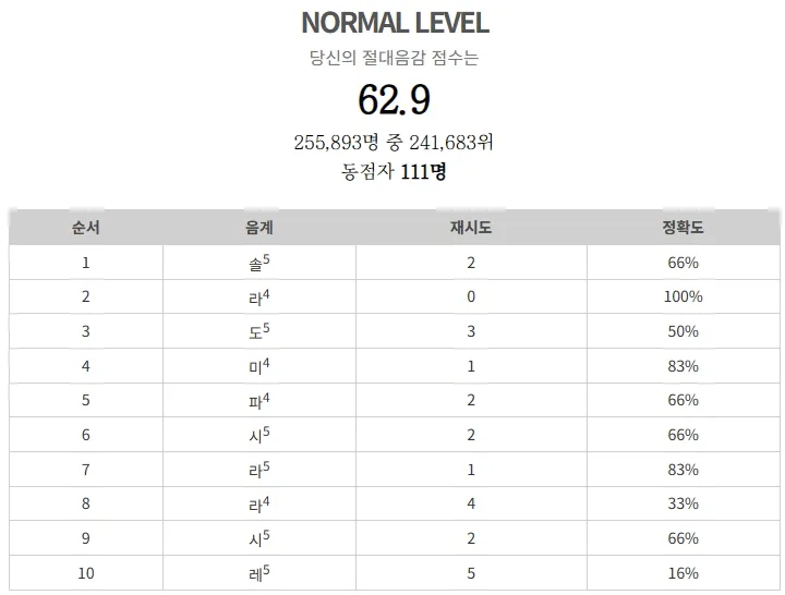 심콩 사이트에서 절대음감 테스트를 할 수 있습니다. 이 사이트에서는 EASY, NORMAL, HARD, MASTER, HELL, GOD 등의 난이도를 선택할 수 있으며, 테스트 결과는 재시도 횟수, 정확도, 음계 정답 등이 나옵니다. 친구와 함께 해보거나 SNS에 공유할 수도 있습니다.
